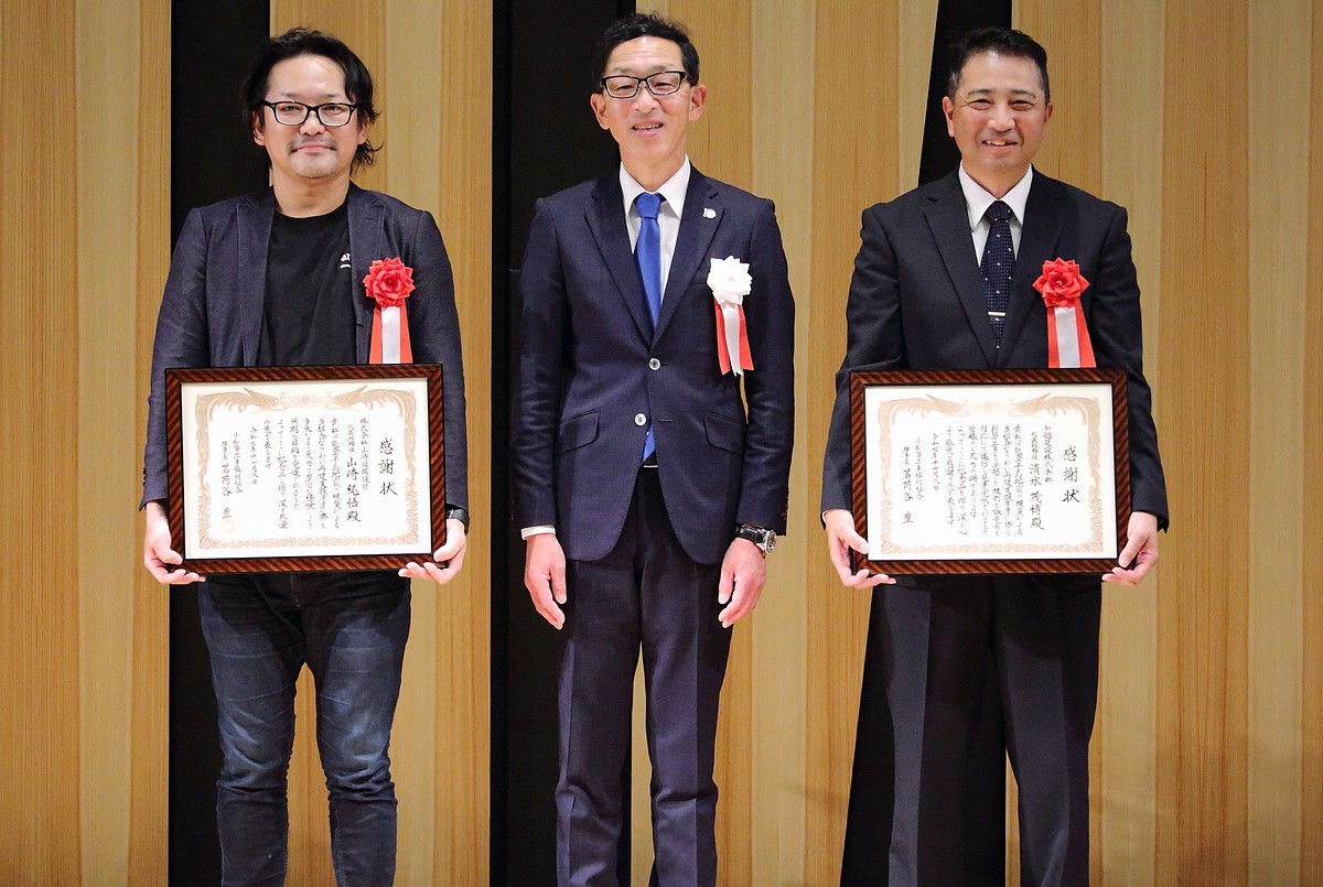 この再建事業に際し、大変なご尽力をいただきました、設計事務所と施工業者に感謝の意を表し、感謝状と併せて記念品をお送りいたしました。
